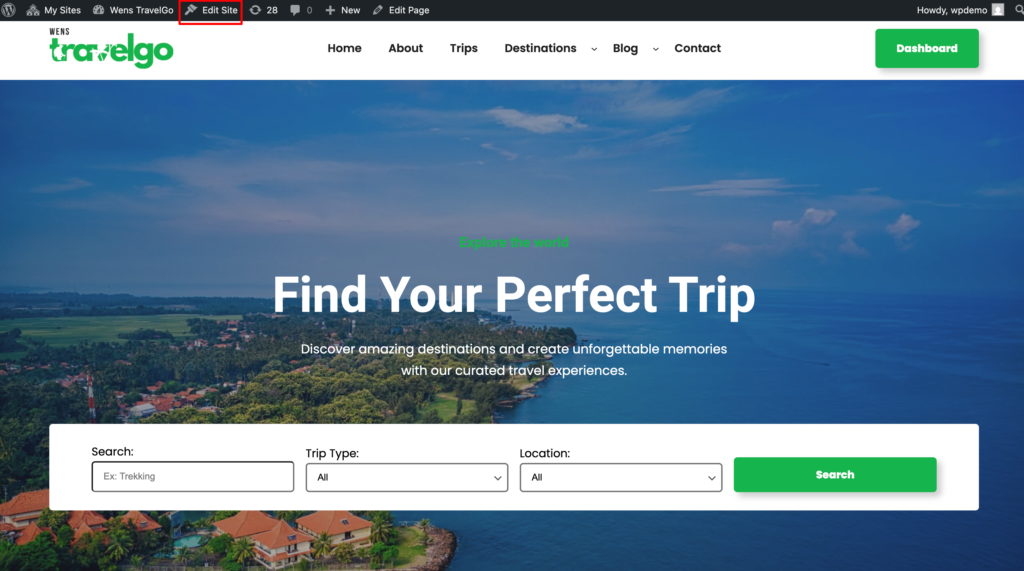 • Click on “Edit Site” to open the Site Editor.