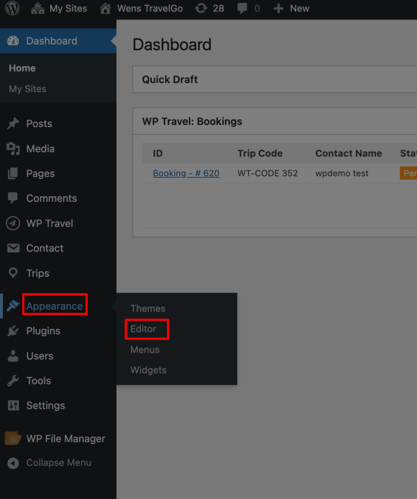 • Navigate to Appearance → Editor.
