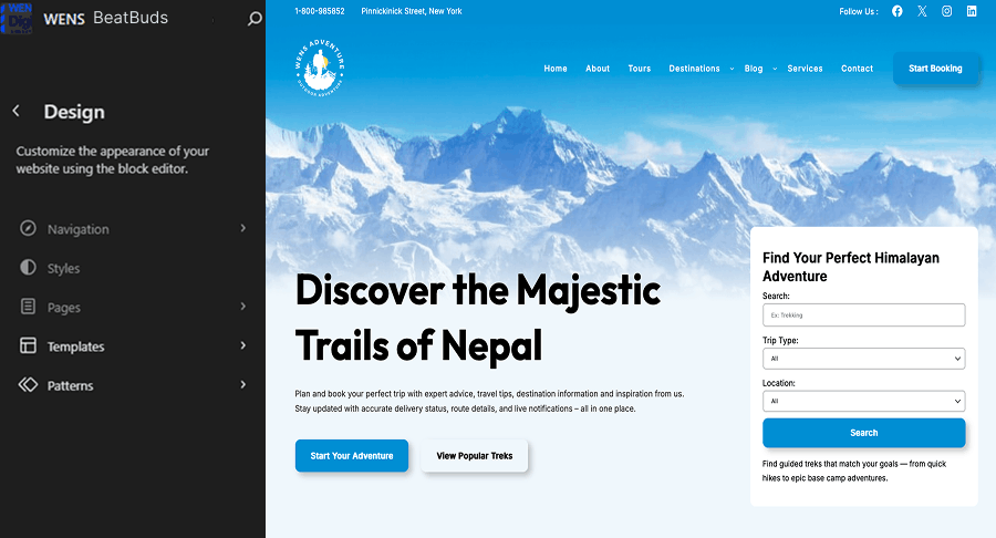 WENS Adventure is a modern and dynamic WordPress theme designed specifically for travel agencies, tour operators, and businesses focused on adventure. It aims to help users create a powerful online presence. Built with the latest Full Site Editing (FSE) capabilities, this theme offers complete flexibility, allowing you to customize every aspect of your website using intuitive block-based tools—no coding needed.